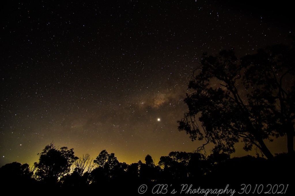 Took many photos of the Milky way and the Venus from different angles , different camera settings . The light pollution is from the Perth city lights.
