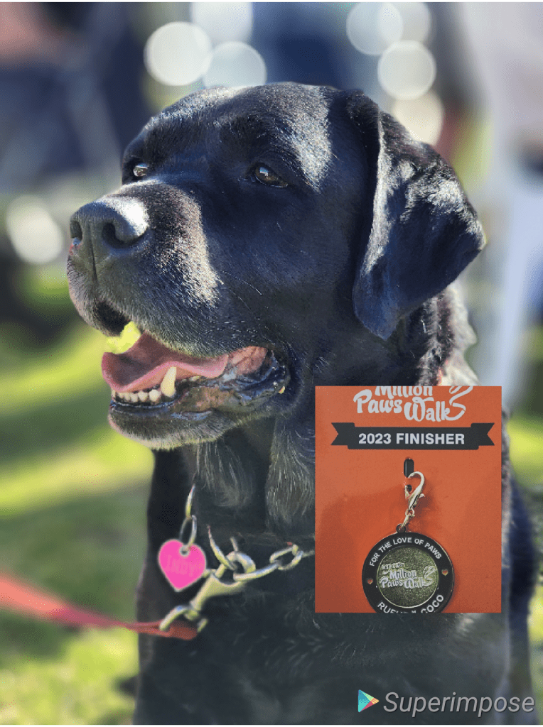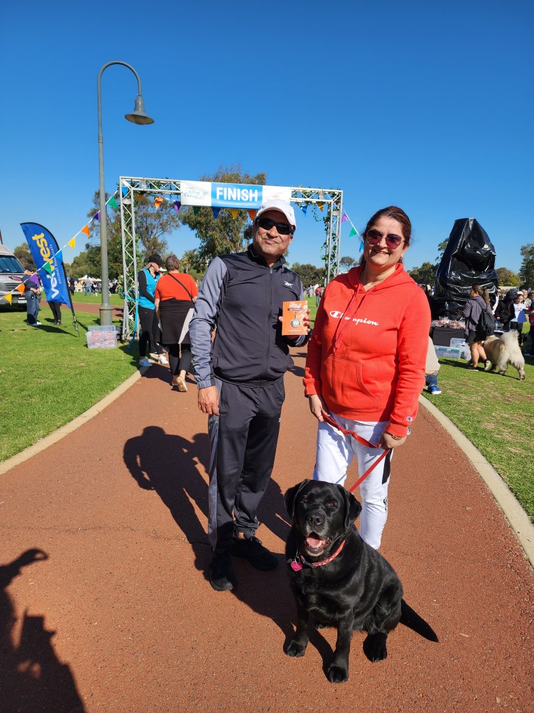 We finished the 4 kms walk and at the finish line , Indy received the ” Finisher gift” from RSPCA.