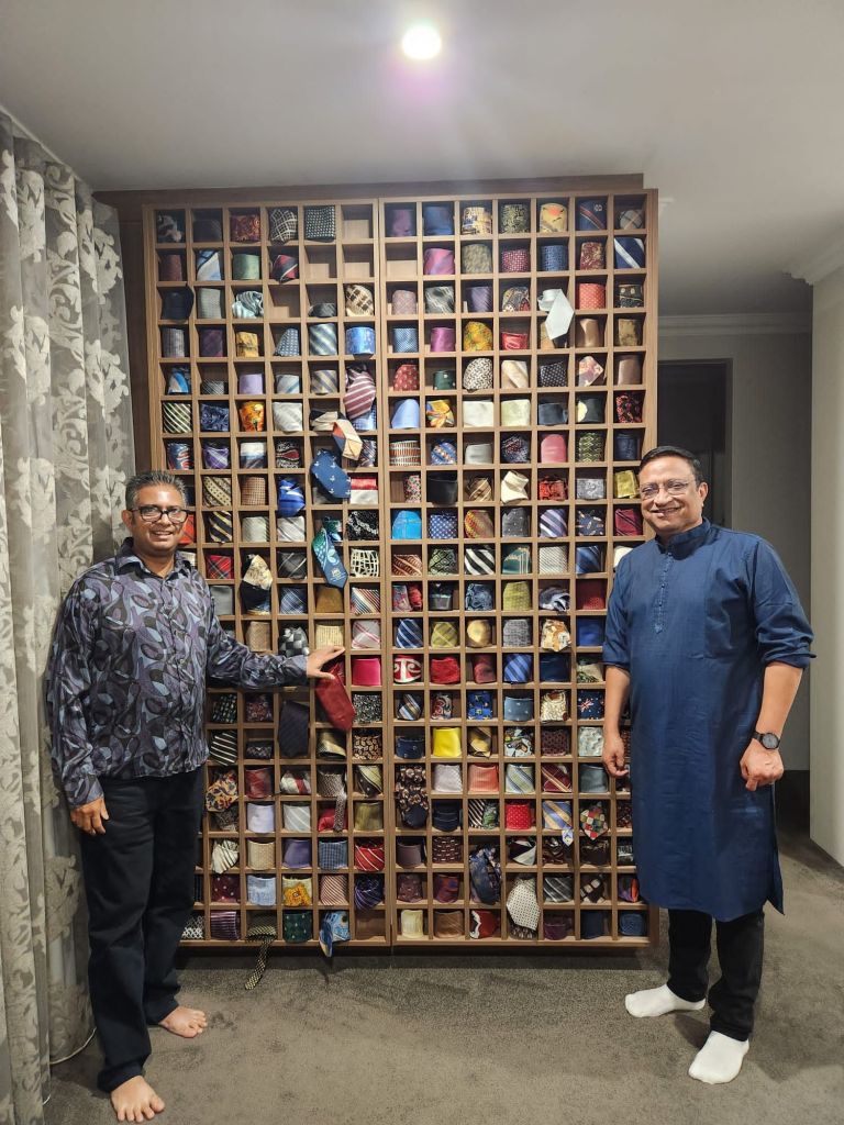 We were invited for a dinner at Dr. Samir Heble’s beautiful residence last week. And he showed us his collection of ties.