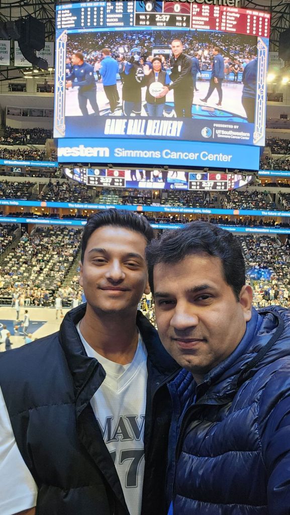 One of the main reasons travelling to US around this time of the year is to book tickets for Raj to watch a NBA match live . As he expressed his wish to his favourite Chotu mama , the latter took all the initiative to book tickets for Raj and then buy an original jersey for his favourite team the Dallas Mavericks today morning. Thank you Ranjit ( Chotu ) for making his dream come true ! It wouldn’t have happened without your support .