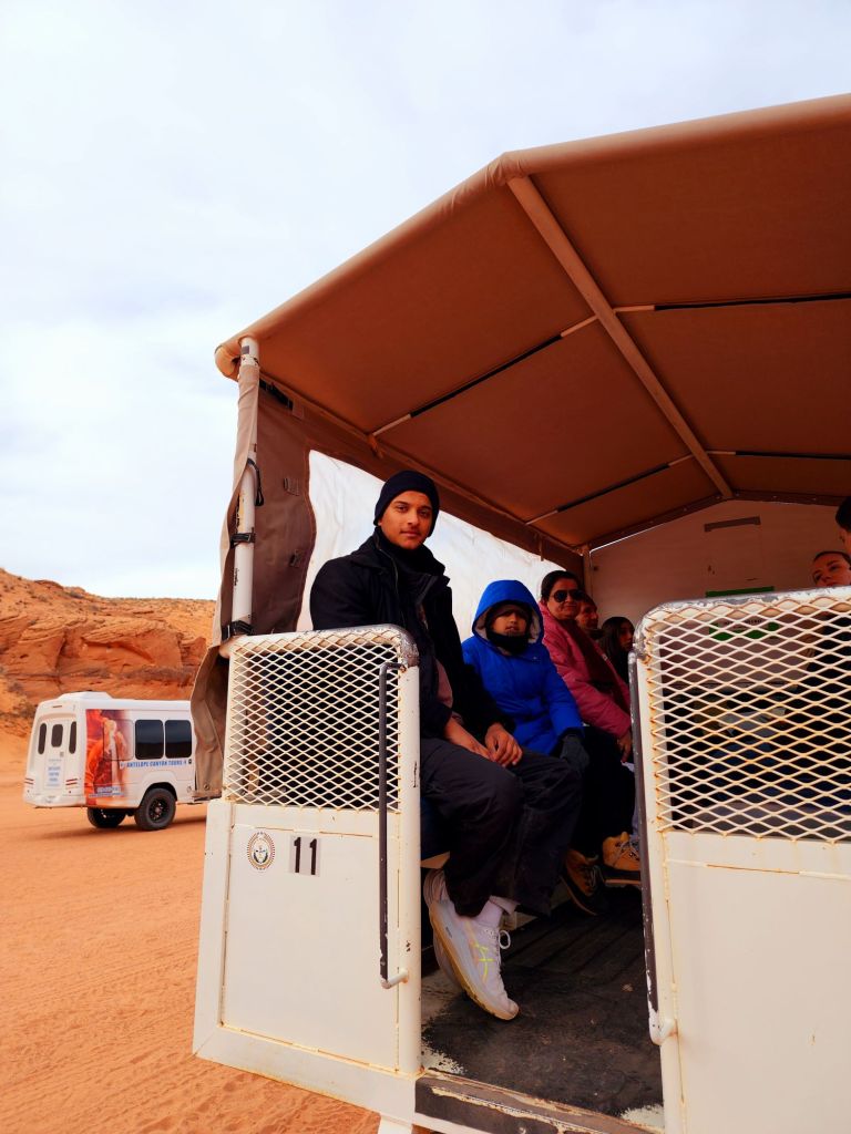 Next day morning , we woke up early , had our breakfast, wore enough warm clothes and drove to the tour operator office not too far. From there , we took a Jeep to the Antelope Canyon.